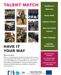 Liverpool City Region Talent Match is an exciting, creative programme that will develop real skills and meet the demands of both young people and employers. The programme offers intensive support through a voluntary relationship with a dedicated Intensive Mentor who will develop a personalised pathway programme for each young person. Young People are challenged to become motivated and inspired, building on their existing skills, knowledge and interests.